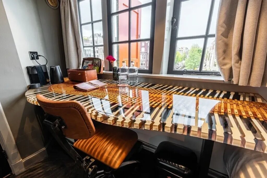 Twelve of the fourteen hotel rooms boast impressive views of the Amsterdam canals. The other two are located in the back of the hotel and overlook the vibrant Lijnbaanssteeg alley. Each room has its own unique design, representing a craft while respecting the historical context of the building.