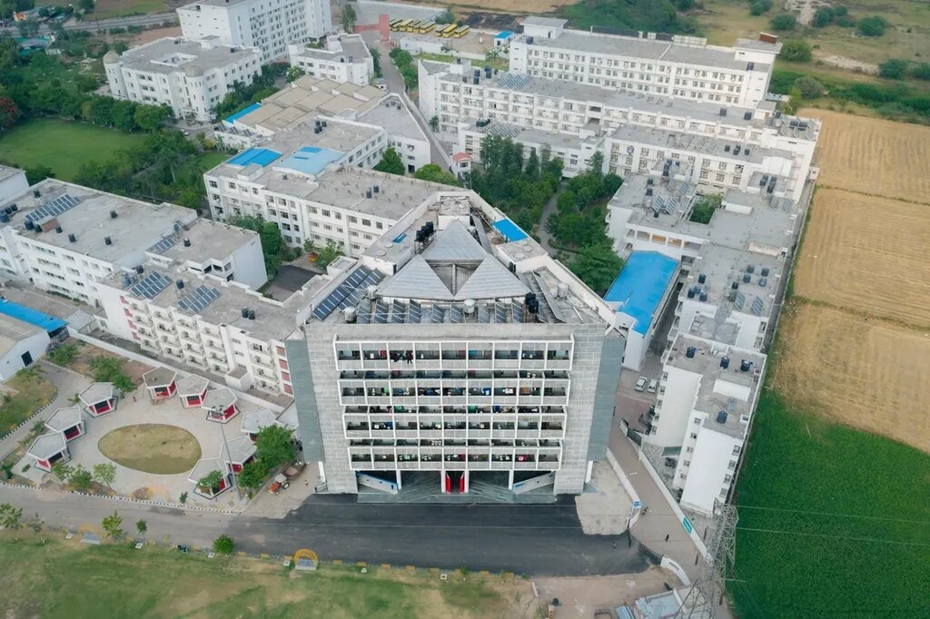 On the ground level, you’ll find the reception, dining area, and an adjacent kitchen. The first floor houses a reading room, administrative spaces, and the warden’s room. Student accommodation spaces line the floors above, with the bridges providing overflow areas and facilitating seamless circulation between corridors. Each room features a covered balcony, and the building’s exterior is finished with a grey grit texture to ensure it blends harmoniously with the campus’s other structures.