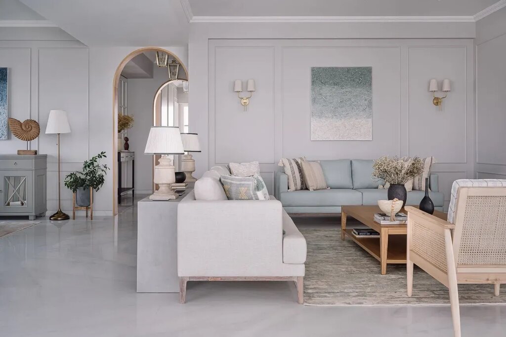 Quirk Studio was commissioned to design a home in one such high-rise, located in the 11th floor. The client was keen to induce accents of the English countryside with its classical details in his home. In the backdrop of natural light and scenic beauty of the surroundings, the designers opted for a neo classical exposition with a dash of contemporariness. This finally led to the creation of an abode which embraces minimalism within an opulent framework.