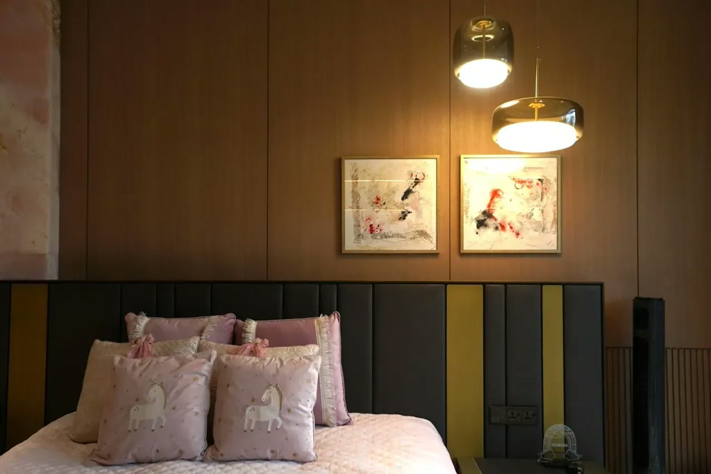 Inside, the residence unfolds vertically across levels, each carefully zoned to support both togetherness and retreat. The basement is dedicated to leisure, housing an entertainment lounge complete with a bar and recreation areas. The ground floor serves as the primary communal space and accommodates the parents’ suite, while the first floor is designed for the children of the family. The second floor becomes a private sanctuary, offering solitude and a quieter rhythm of living. This thoughtful zoning ensures a seamless flow between public, private, and leisure spaces, while circulation remains intuitive and unobtrusive.