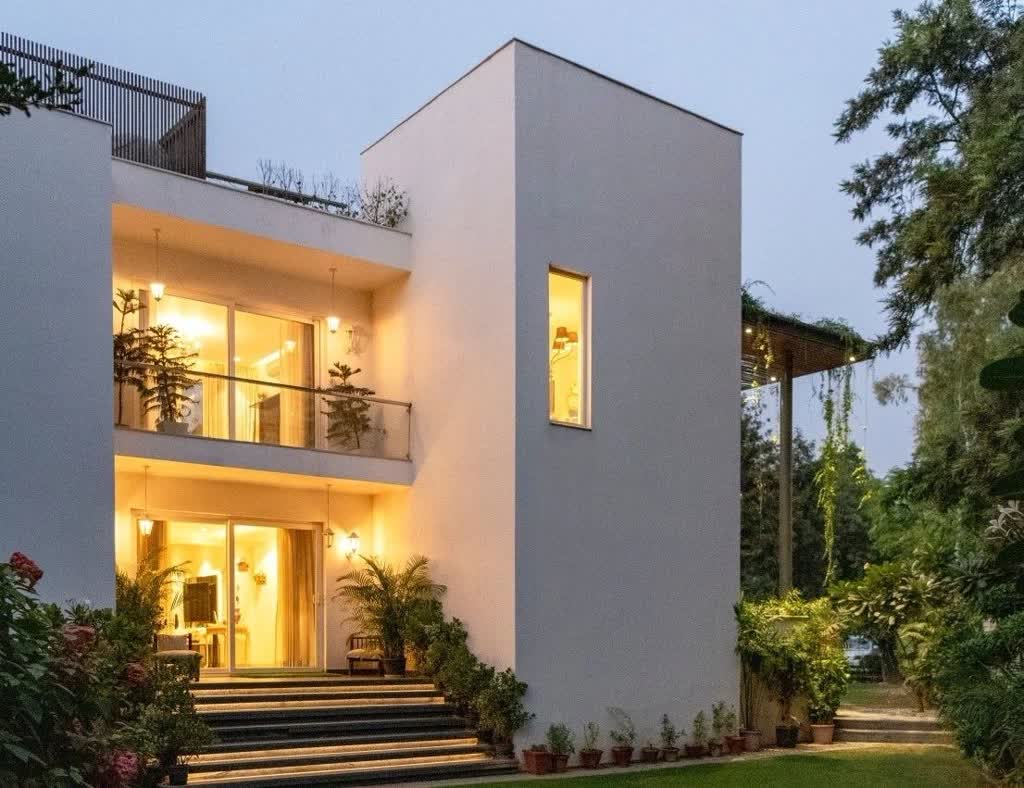 In designing the Ansal Villas, Team RSDA have created a design that is contextual and instantly lends the built structure a character, that responds to the unique and specific site conditions. A visit to Ansal Villas is like a walk in the park. A house that proves minimalism, green vistas and white hues are all you need to design a timeless abode. Nestled inside a plot of land enveloped by greenery, this charming modern farmhouse is a perfect getaway from the perils of city life.