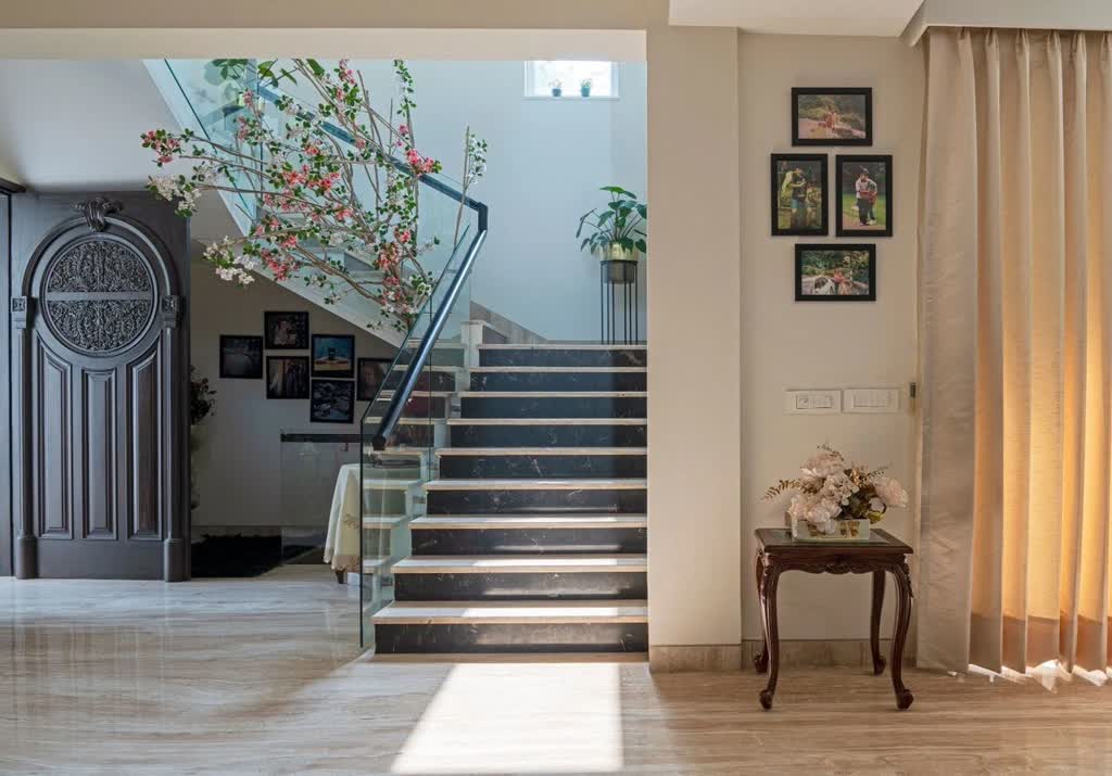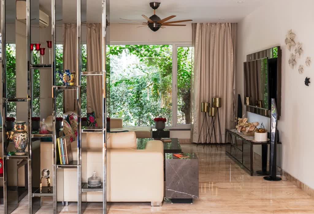 The house receives a lot of natural light, thanks to its Vaastu compliant position. While the windows and openings are guarded by the surrounding green envelope. For ambient lighting LED concealed light fixtures were used apart from chandeliers and pendant/floor lamps which were procured from various vendors in Delhi.