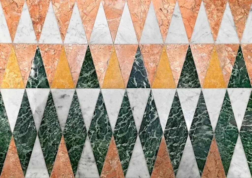 The lower floor, intimate and welcoming, houses several rooms with vaulted ceilings, once used as storage areas for the shops above. The polychrome marble floor, inspired by the artworks of the futurist painter Giacomo Balla, and the dynamism of his design composed of over 7,000 rhombuses and half-rhombuses in marble, brings continuity and fluidity to the rooms, fragmented by the original structure.