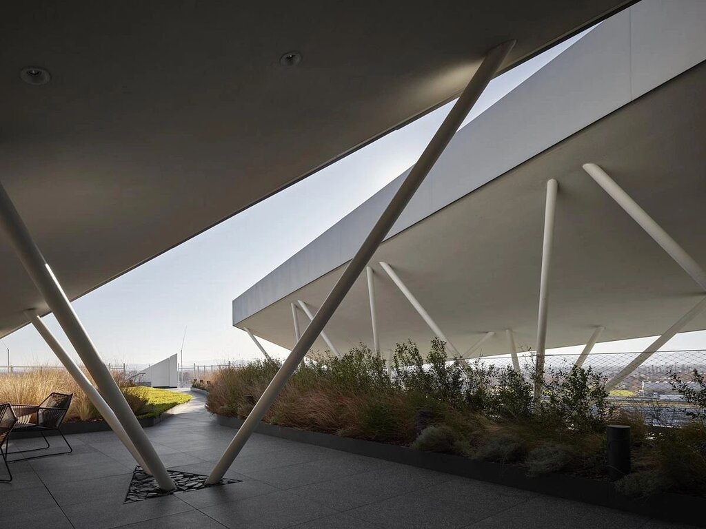 Furthermore, the principles of neuro-architecture were crucial in shaping the ideal working environment. The precepts of neuro-architecture have guided most of the design choices, which focused on finding the ideal working space. Thus, external factors, such as light, air, sounds, and visuals, enter the building in the form of calibrated and controlled architectural components and not merely as necessary occurrences. The glass skin covering the Sidera building controls the inflow of natural light that floods every workspace; the light fixtures follow the 24-hour circadian rhythm. The technology employed for ventilation control and the total absence of operable windows ensure the indoor air is clean and healthy despite being in one of the most polluted areas in Europe.