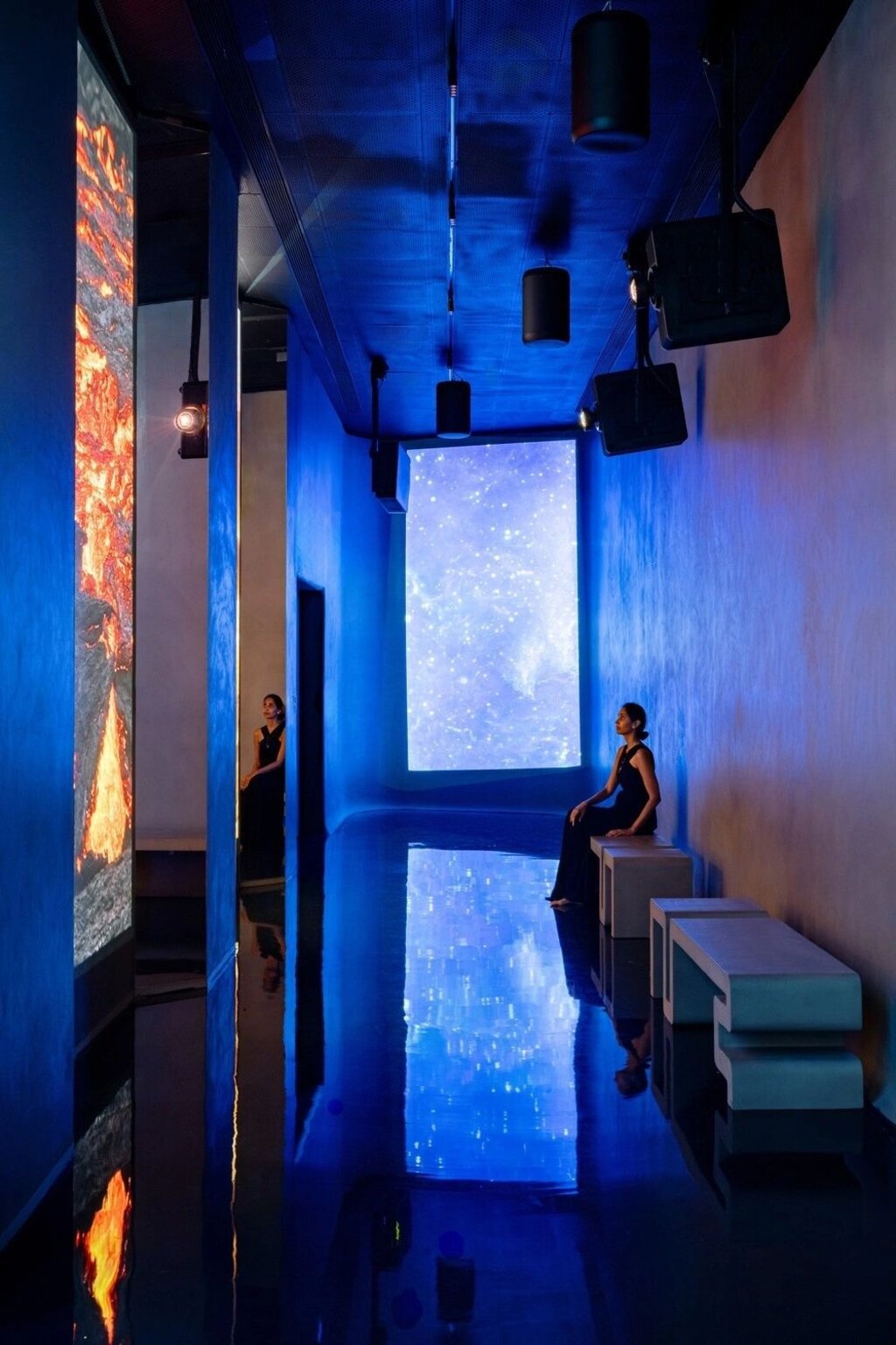 As visitors move through the museum, each of the 18 rooms reveals a distinct experience. The neutral palette of the museum’s interiors acts as a canvas for the richly immersive audio-visual content presented in each zone. These experiences are designed to stimulate the senses while simultaneously calming the mind. The transitions between rooms are fluid, creating an uninterrupted sequence that reflects the museum’s holistic approach to the soul, mind, and body connection.