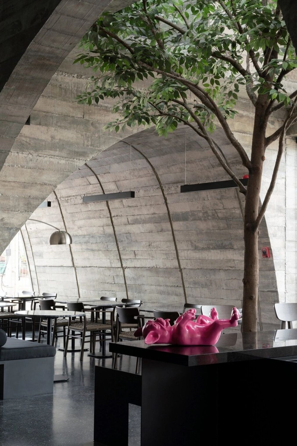 In essence, French Kitsch III is not just a café; it’s a celebration of imperfection and the beauty it brings to design. The space challenges conventional ideas of symmetry and flawlessness, opting instead for a more human, organic approach that resonates with visitors on a deeper level. Every detail, from the asymmetrical arches to the textured concrete walls, serves as a reminder that perfection is not the only path to beauty. In fact, it’s the imperfections – the quirks and unexpected elements – that make French Kitsch III a space worth experiencing.