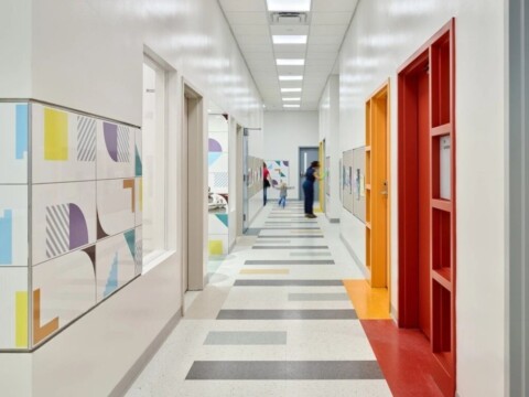 The project occupies the podium of a new residential development on the former site of the Montreal Children’s Hospital. Working within an inherited structural framework that is both expansive and complex, the design leverages the existing conditions to create a porous and legible interior landscape. Circulation is fluid and non-hierarchical, encouraging movement and visual continuity across spaces. Transparency and universal accessibility guide the spatial logic, reinforcing the Centre’s role as a civic resource rather than a closed institutional facility.