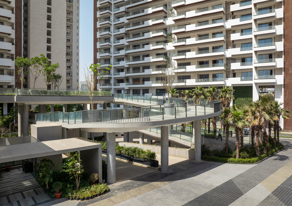Across 4.9 acres with a built-up area of 14 lakh square feet, County 107 demonstrates that density and spatial quality are not mutually exclusive. Rather than maximising built coverage, the scheme dedicates 43 per cent of the site to landscaping — a figure that extends vertically through planted balconies on every floor of four G+30 towers. The layered landscape strategy, from ground-level walkways to a green-wrapped elevated bridge and rooftop plantings, creates an interconnected ecosystem rather than an isolated amenity. By combining the intimacy of bungalow living with the efficiencies of a high-rise, County 107 presents a progressive approach that responds to evolving urban lifestyles and environmental concerns.