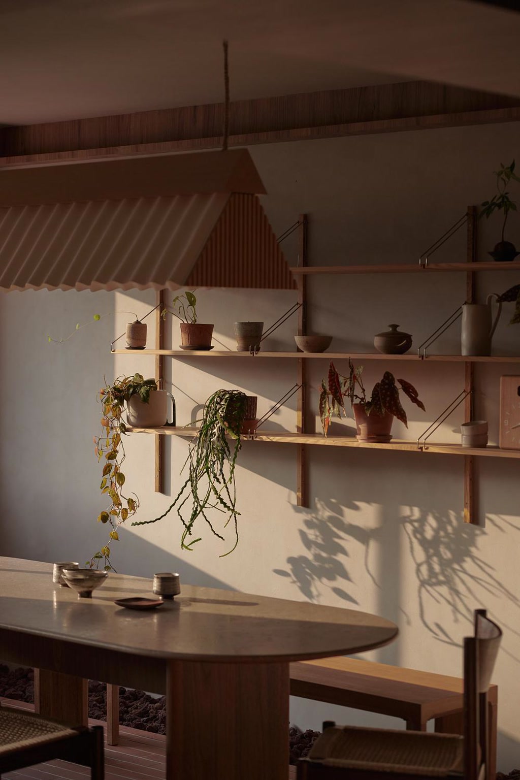 The pandemic may have triggered a renewed engagement with plants for many, but here, the shift endured. The brief was direct: the home needed to accommodate a growing collection of plants. Yet within this practicality lay a more telling observation. The client noted that while he was surrounded by plants, he did not “wake up to them.” This gap — between presence and experience — became the project’s point of departure.