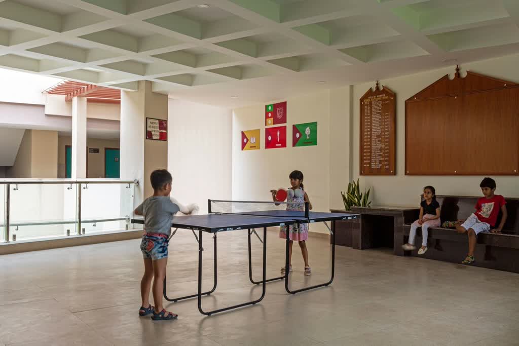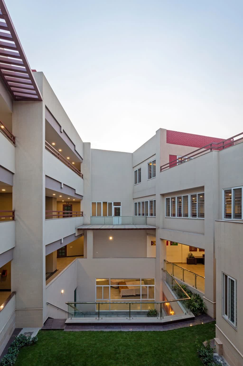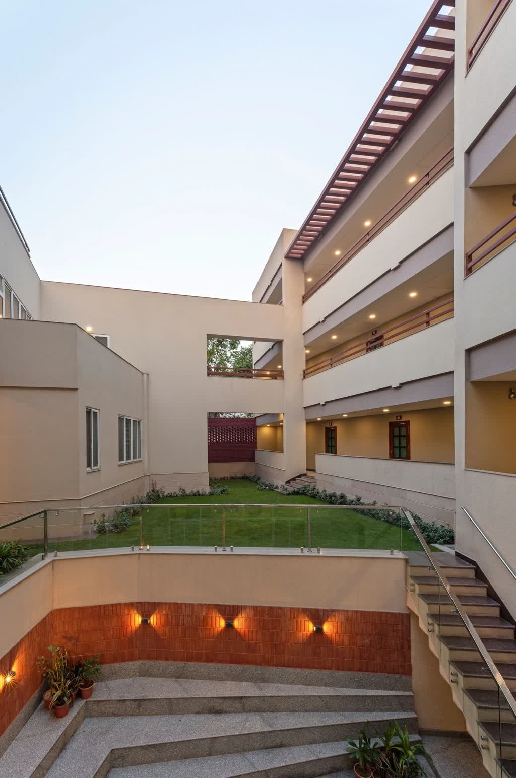 There are various indoor play areas spread across the three floors of the building, with inward-looking terraces to help create a sense of visual connection for everyone, regardless of where they are positioned. Since the building overlooks a central courtyard, all activity areas such as the games room and the computer lab are planned around it in the basement. This is further connected to an amphitheater, where everyone comes together to celebrate and have get-togethers. The space inside the hostel is envisioned as one of fun, enjoyment and loads of interaction under the watchful eye of a warden, whose residence overlooks the same central courtyard.