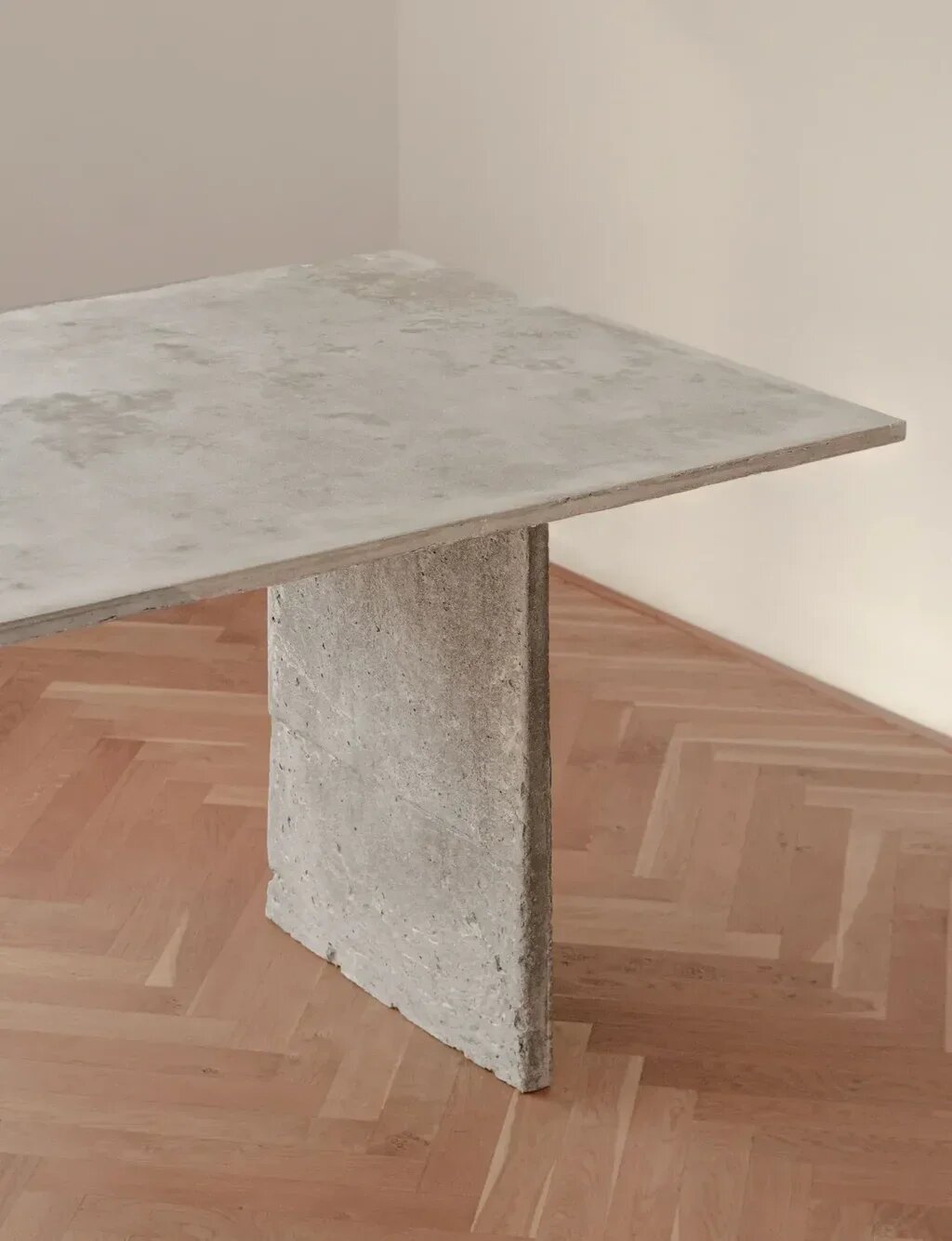 Since I was a part of the construction and mining industry, concrete was readily available. As a construction material, concrete has a different role to play, and somehow our perception of what concrete is and how it can be used seems limited by its application as a construction material. As a product designer, I think concrete has a much wider and more versatile application, which in turn led to the inception of my first collection of concrete furniture. The playful and provoking pieces designed using thin and precise cast concrete make us doubt if it is concrete at all. The surface is silky smooth, contrasting with the rough and unpolished bottom of the table.