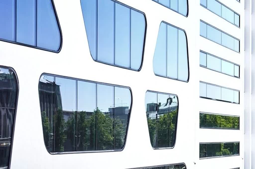 3deluxe has created an exciting ensemble featuring various architectural interpretations of the different eras that define the city. For example, the new corner building is an homage to Lithuania’s Art Deco heritage. With its rounded and organically shaped glass fronts and the elongated façade, the corner building is quite captivating thanks to its elegant simplicity and flowing forms. Here, the coming together of old and new building cultures is celebrated rather than concealed. Extensive glazing and unfussy design meet detailed window frontage featuring applied decoration inspired by the façades of the neighboring historical buildings.
