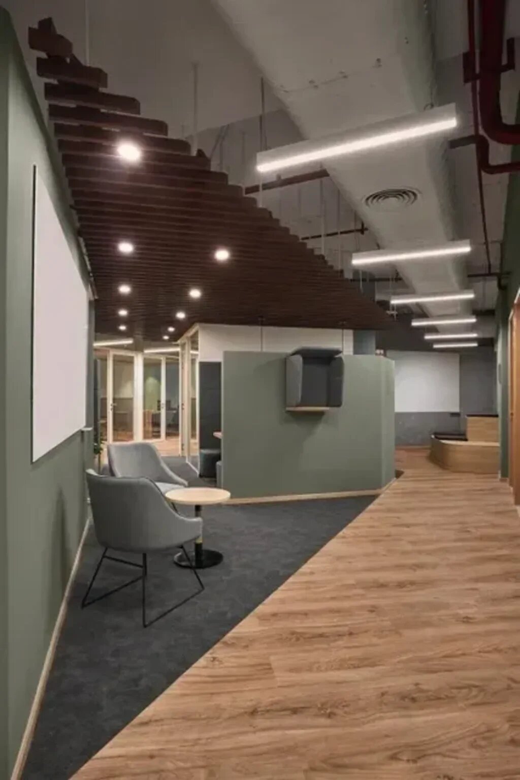 Phase 3 focused on diverse spaces like informal meeting rooms, meeting pods, and cafeteria, all serving as multi-functional spaces for collaboration, enhancing the whole work experience and interaction between the employees.