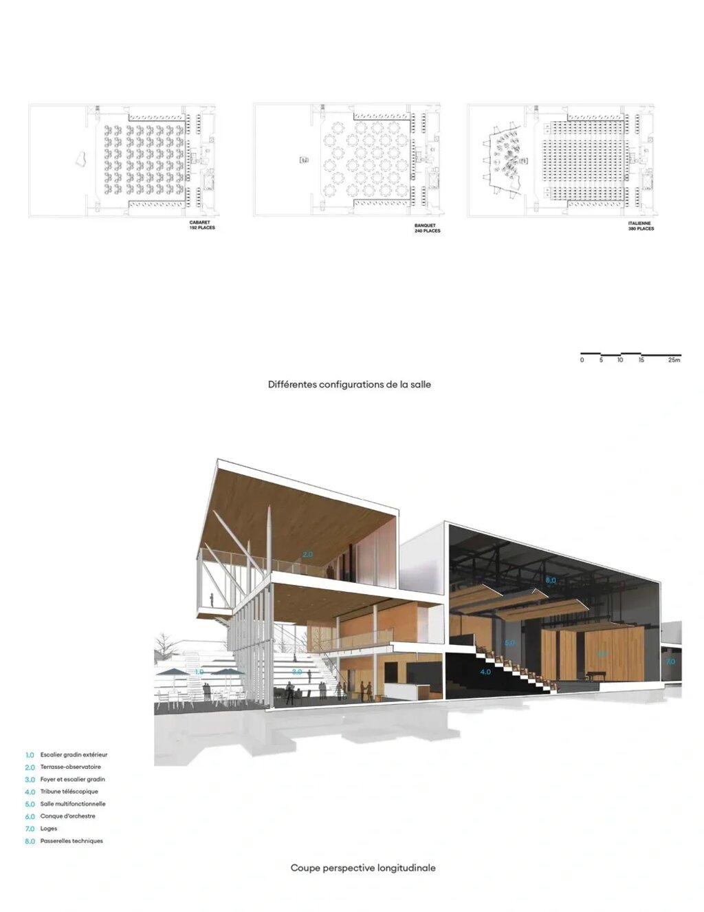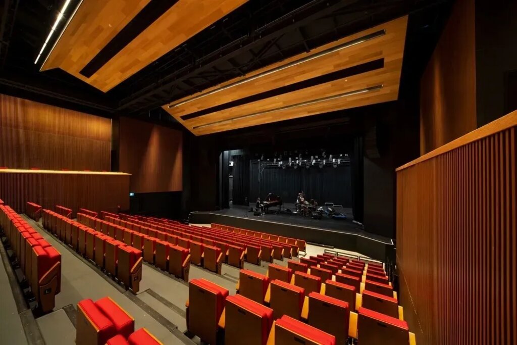 The new Repentigny Theatre is the result of an architectural competition aimed at offering patrons a variable configuration room with 350 seats for various cultural activities, while also providing a prominent space for classical music. The project completes a civic ensemble called Repentigny Cultural Space, conceived and developed at the heart of the municipality.