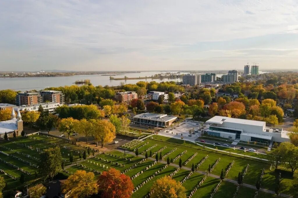 To appreciate the Repentigny Cultural Space at its true value, a terrace-observatory was conceived to provide visitors with a panoramic view encompassing a local cemetery, the Purification church, the St-Lawrence river, Lebel Island, thematic gardens, the forecourt, and the Diane-Dufresne Art Centre. The space provides citizens with an opportunity to see their surrounding environment, consisting mainly of single-family residences, in a different light. It also provides an opportunity to strengthen the feeling of belonging to a territory and a community.