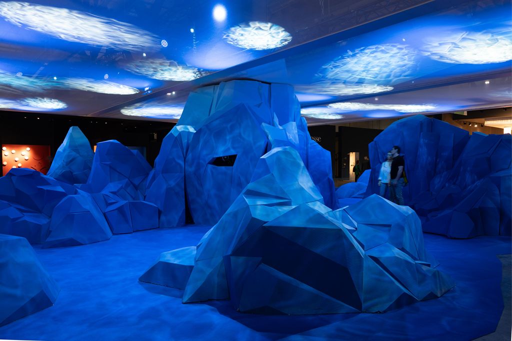 As an annual design event, year on year, Salone Del Mobile keeps improvising across numerous fronts, including its layout. This year the design of the individual areas served as a guide, creating a pathway that included both experiential spaces and zones for rest and relaxation, Then there were these immersive and interactive site-specific installations that also stole the highlight. One such installation titled “Under the Surface” was based in Pavilion 10 which hosted the International Bathroom Exhibition. The installation designed to examine the significance of water in bathroom design was developed by Accurat, Design Group Italia, and the design studio Salotto NY. Presented as a submerged island, the installation explored the effects of daily water use and how modern bathroom design can influence and change our habits.