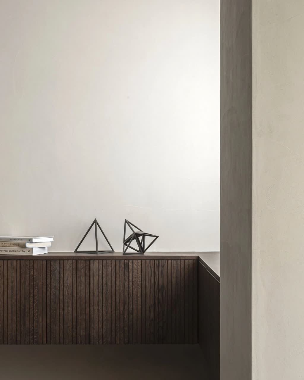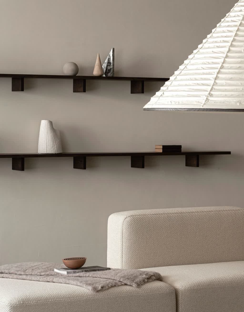This notable feature connects the furniture piece to many of the other Karimoku Case Study products, creating coherence across the furniture collection. Specifically designed for this project is also the elegant modular wall shelf N-WS01 by Norm Architects, which is inspired by the pattern of supporting columns in architecture.